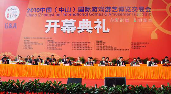 2010年11月3日—6日,由國家文化部文化市場司作為指導(dǎo)單位,中國游藝機游樂園協(xié)會、中國軟件行業(yè)協(xié)會游戲軟件分會、廣東省文化廳、廣東省貿(mào)促會與中山市人民政府聯(lián)合主辦的2010中國(中山)國際游戲游藝博覽交易會(簡稱“游博會”)在廣東省中山市博覽中心隆重開幕。