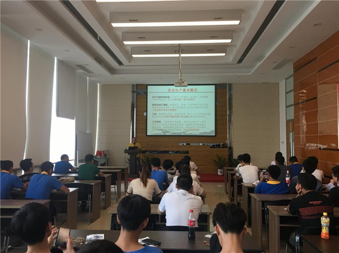 理論培訓包括:人事行政部講授了公司的文化和規(guī)章制度;公司消防隊講授了消防安全的理論和自救與救援實操方法;公安派出所的警官為新員工帶來治安法制教育,提升員工法律法規(guī)意識;安委會分享了安全生產(chǎn)案例,學習安全生產(chǎn)的應(yīng)急救援方法;精益部分享優(yōu)秀精益提案生動地詮釋了精益生產(chǎn)。全體受訓人員以筆試方式通過了理論培訓考核。
