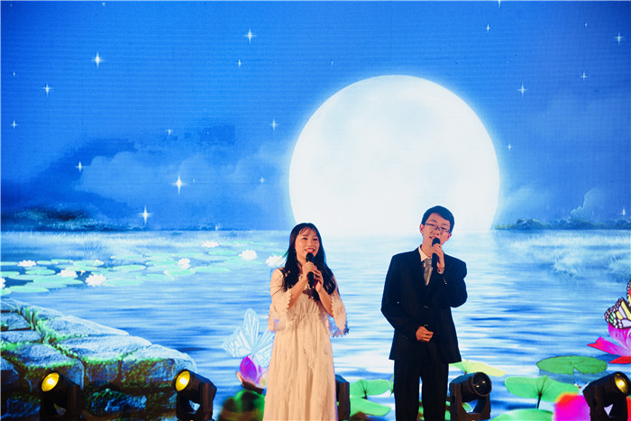 18:30,晚會正式開始。公司董事長鄧總、副總經(jīng)理曾總分別為晚會致辭,他們向全體同事和家屬、以及奮戰(zhàn)在海內(nèi)外現(xiàn)場一線的員工致以節(jié)日的祝賀和美好的祝愿,并鼓勵大家為了金馬公司更美好的明天再接再厲、奮力前行。緊接著是節(jié)目演出環(huán)節(jié),一個個由員工自導自演的精彩節(jié)目陸續(xù)登臺演出,快歌輕盈如溪,慢歌綿長有致,小品張弛有度,舞姿輕盈優(yōu)美。節(jié)目演出期間還穿插了激動人心的有獎競答互動環(huán)節(jié),企業(yè)文化知識與中秋趣味問答相互承接,知識與生活交融,在熱烈歡快的氣氛中,臺上臺下形成一片熱鬧歡快的海洋歌聲,晚會氣氛不斷推向高潮。