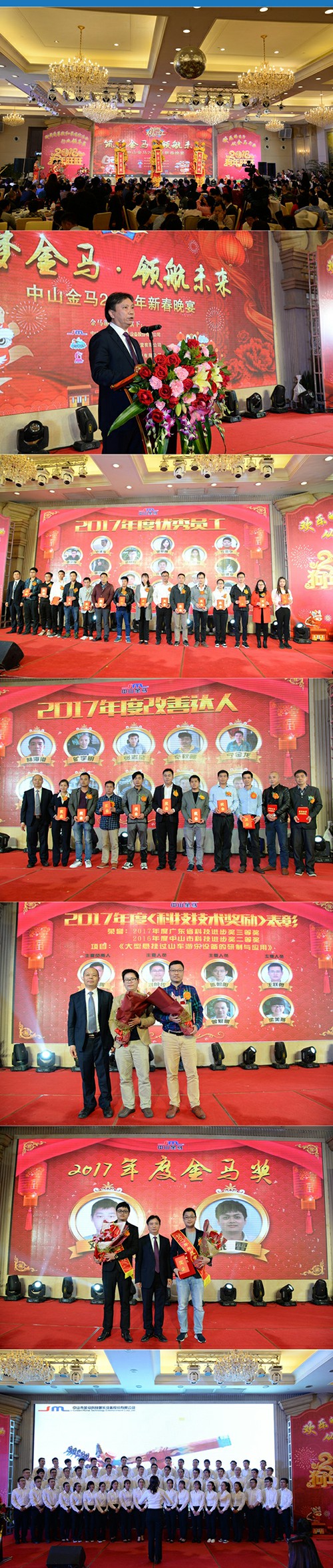 晚會現(xiàn)場,同行云集,燈光璀璨,激情四射的歌舞表演,催人奮進的年度表彰、扣人心弦的幸運抽獎、倍感溫暖的節(jié)日慰問。歡歌笑語中,團結(jié)、拼搏、創(chuàng)新的金馬人們展示了金馬團隊積極向上的精神風貌,增強了金馬人的凝聚力和歸屬感,弘揚了金馬企業(yè)精神。就公司在2017年所取得的成績,金馬公司鄧志毅董事長在晚會致辭中表示,“金馬的輝煌成績離不開今天金馬人的團結(jié)和努力,2017年是金馬公司保持良好發(fā)展勢頭的一年,是拓展業(yè)務(wù)、團隊建設(shè)、技術(shù)創(chuàng)新取得驕人成績的一年,是金馬全體員工迎接挑戰(zhàn)、經(jīng)受考驗、克服困難、出色完成規(guī)劃的一年。在新的一年來臨之際,我們更應(yīng)該卯足干勁、攜手同心、再創(chuàng)金馬輝煌”!