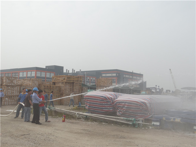 演練共計分三個科目進行:一是滅火器的使用;二是消防水帶接續(xù)的現(xiàn)場培訓(xùn);三是模擬火災(zāi)現(xiàn)場的撲救演習(xí)。演練前公司制定了2017年下半年消防演練方案,成立了現(xiàn)場指揮部,下設(shè)救火組、人員疏散組、物資搶救組、照明通訊組以及安全救護組。