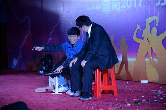 晚會(huì)在當(dāng)日18:30準(zhǔn)時(shí)開始,近300名金馬人有序齊聚臺(tái)下,一卸工作的疲累,放松精神,歡樂暢談,縱享小食。一開始是前期迎春文體系列活動(dòng)的頒獎(jiǎng)表彰環(huán)節(jié),籃球、羽毛球、桌球、乒乓球、越野、攀巖等各項(xiàng)活動(dòng)獲獎(jiǎng)代表分別從頒獎(jiǎng)?lì)I(lǐng)導(dǎo)手中接過獎(jiǎng)狀和獎(jiǎng)金,喜悅之情溢于言表。隨后,文藝匯演正式開始,瞬時(shí)音樂響起,燈光閃爍,全場目光齊刷刷地射向舞臺(tái)。喜慶洋洋的“恭喜發(fā)財(cái)”率先登臺(tái),來自機(jī)械車間的6名員工將濃濃的年味散播至現(xiàn)場每一個(gè)角落;開料車間創(chuàng)意策劃編排的“大王叫我來巡山”舞蹈完美融合生肖吉祥物寓意,打造出一個(gè)“眾猴拱雞”的趣味舞臺(tái);來自玻璃鋼車間王曉玲的一首“映山紅”以其游刃有余的高聲調(diào)震撼全場;精益部的“ 鞋釘”小品雖僅2人登臺(tái),卻憑借生動(dòng)形象的人物塑造與演出征服了臺(tái)下評(píng)委與觀眾... ...匯演中場雖時(shí)有毛毛細(xì)雨拂起,但像雨像霧又像風(fēng)的感覺為演出現(xiàn)場平添了一絲韻味,增添了一份浪漫的氣息,整場表演更是可謂精彩紛呈、引人入勝。