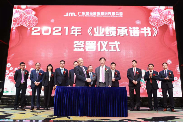 在全場(chǎng)人員的共同見證下,公司各部門及子公司負(fù)責(zé)人共同上臺(tái)簽署2021年《業(yè)績(jī)承諾書》,隨后在全場(chǎng)熱烈的掌聲中全體高管手執(zhí)輝煌線,共同為“金馬游樂(lè)”更名揭牌。更名后,公司將以嶄新面貌繼續(xù)為全球客戶提供優(yōu)質(zhì)的游樂(lè)產(chǎn)品和服務(wù),在新征程中再創(chuàng)金馬輝煌偉業(yè)。