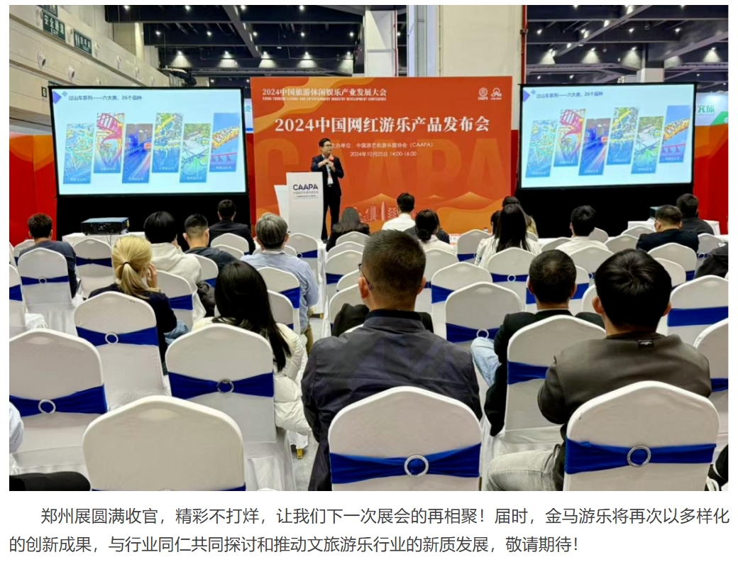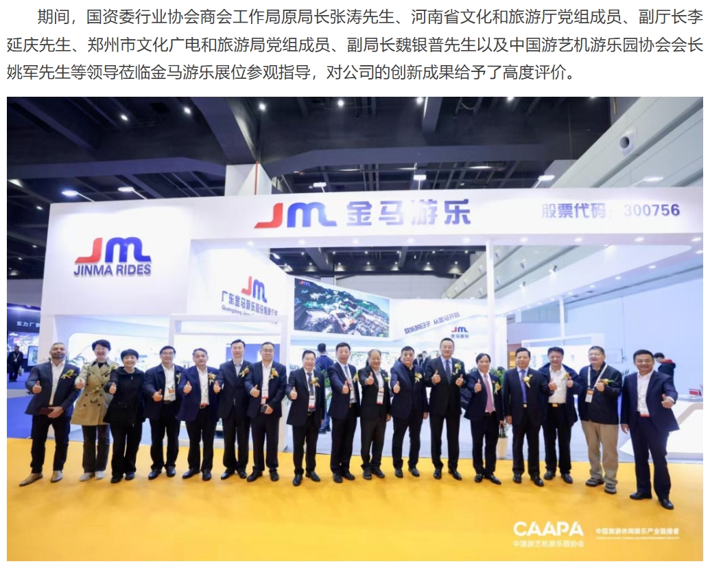 10月24-26日,由中國(guó)游藝機(jī)游樂(lè)園協(xié)會(huì)(CAAPA)主辦的2024中國(guó)(鄭州)旅游休閑娛樂(lè)產(chǎn)業(yè)博覽會(huì)在鄭州國(guó)際會(huì)展中心舉行,本次博覽會(huì)及相關(guān)活動(dòng),旨在進(jìn)一步推動(dòng)文旅休閑娛樂(lè)行業(yè)的發(fā)展與繁榮,促進(jìn)文化旅游與多業(yè)態(tài)深度融合,助力旅游業(yè)現(xiàn)代化建設(shè)和高質(zhì)量發(fā)展。公司董事長(zhǎng)鄧志毅先生與眾多行業(yè)領(lǐng)導(dǎo)、嘉賓共同出席了開(kāi)幕儀式。