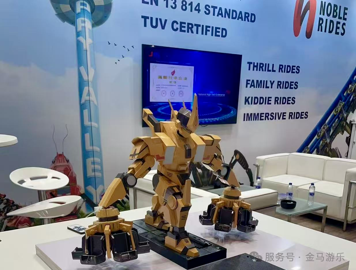 展臺(tái)現(xiàn)場(chǎng),金馬游樂及旗下瑞士子公司Noble Rides的多款創(chuàng)新產(chǎn)品成為全場(chǎng)焦點(diǎn):為德國客戶量身打造的移動(dòng)懸掛過山車、符合國際安全標(biāo)準(zhǔn)的全景大橋廂摩天輪、面向家庭游樂市場(chǎng)的機(jī)甲互動(dòng)系列等,吸引了大量專業(yè)觀眾駐足體驗(yàn)。值得一提的是,金馬游樂在歐洲的首套過山車項(xiàng)目計(jì)劃于2026年完成交付。