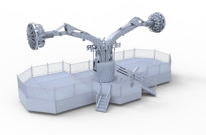 繞垂直軸旋轉(zhuǎn)、座艙繞支臂軸旋轉(zhuǎn)的陀螺類游樂設(shè)施;大臂向上拉升,到達(dá)上限位置后,座艙旋轉(zhuǎn);傾斜運(yùn)行、俯瞰大地,體驗(yàn)翻倍;