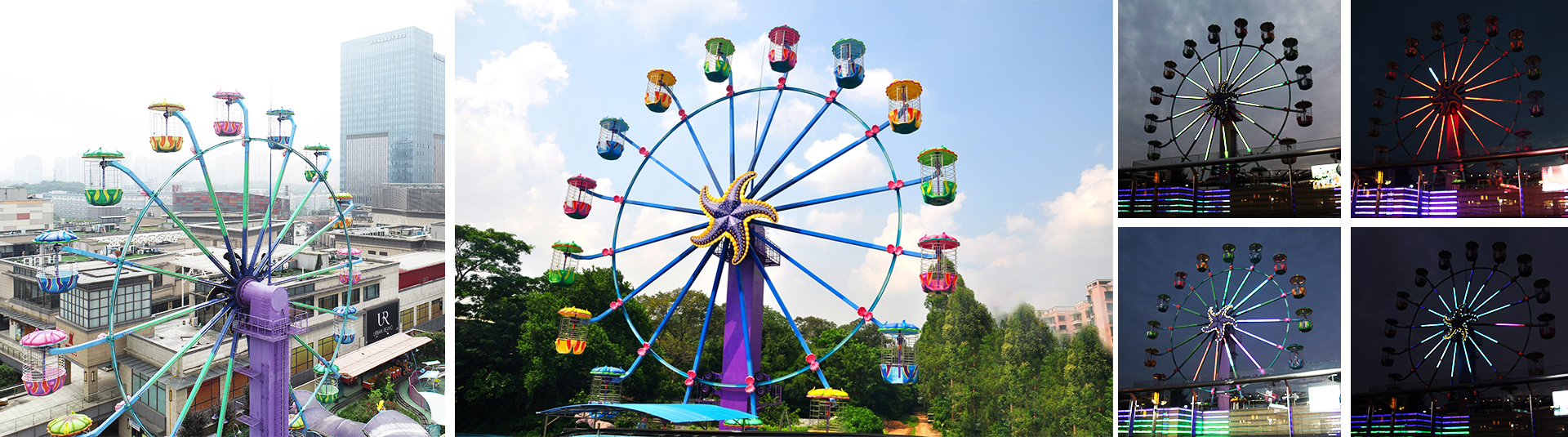 ?型摩天輪可承載48?,主要由?柱、塔頭、旋轉(zhuǎn)頭、轉(zhuǎn)輪、避雷針、吊籃、驅(qū)動裝置和電?系統(tǒng)等組成,并配備燈光和?響。設(shè)備外觀萌趣、造型?巧精致,能為樂園??提升歡樂?氛,是公園和游樂場很受歡迎的觀覽游樂設(shè)備。