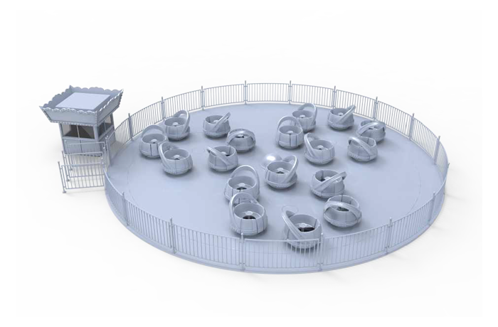 轉(zhuǎn)轉(zhuǎn)杯設(shè)備是由軌道、大盤、小盤及杯體組成,動(dòng)物主題外觀,乘客坐在杯中體驗(yàn)多重復(fù)合轉(zhuǎn)動(dòng)所帶來(lái)的旋轉(zhuǎn)樂(lè)趣。