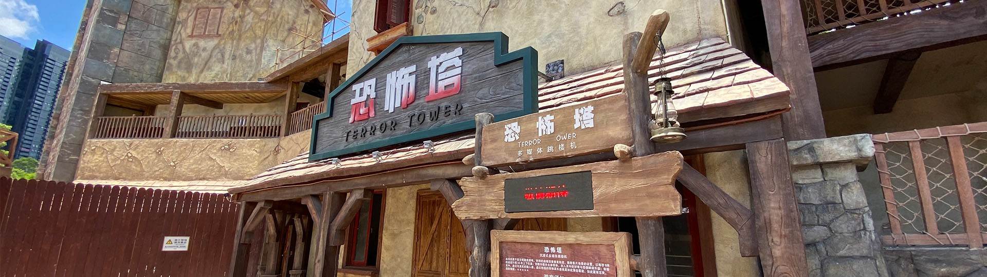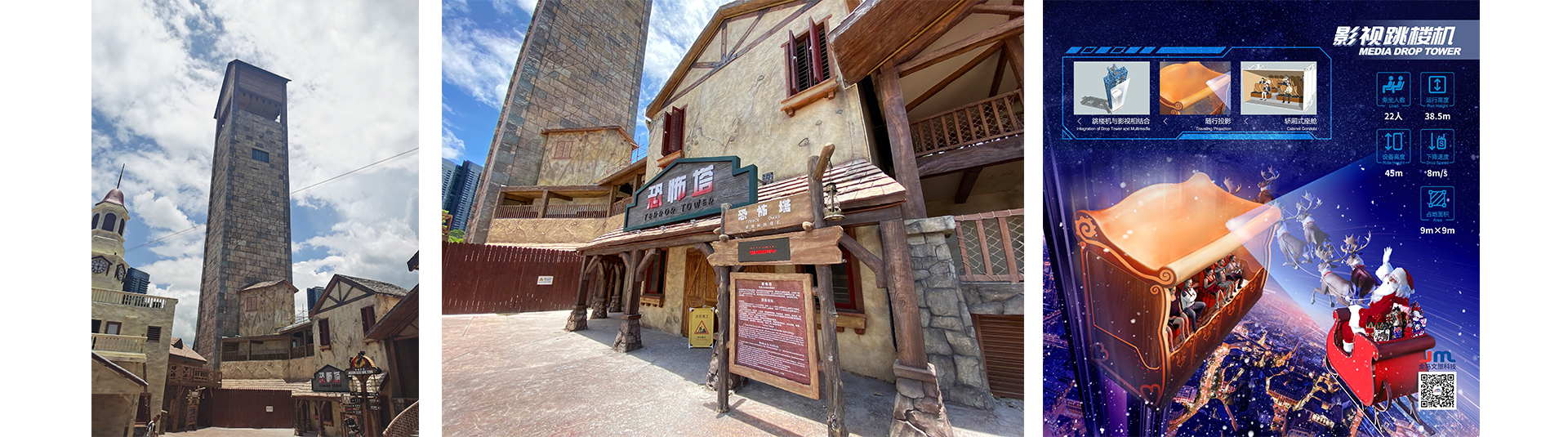 影視跳樓機(恐怖塔)項目是一款虛擬和現(xiàn)實相結合的高端游樂項目,其轎廂采用5面封閉、留出前面敞開的方式,供乘客上下及運行時觀看特效及塔外景象。設備座艙隨著故事情節(jié)上下跳躍,當座艙上升到塔體最高位置時,布置于塔頂?shù)拇笮妥詣娱T突然打開,游客可欣賞整個景區(qū)的風景。之后座艙下降,又重新跌回影片情節(jié),給游客前所未有的新奇體驗。