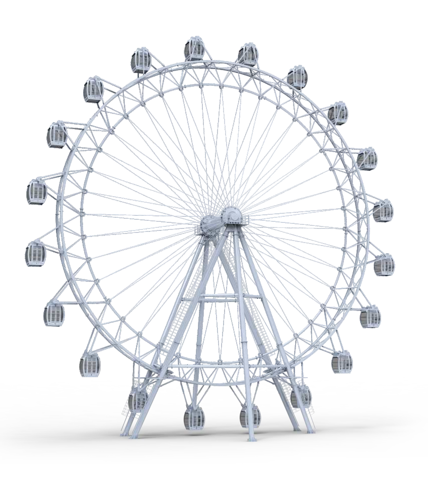 觀覽?輻條式轉(zhuǎn)盤設(shè)計(jì),使其更為輕巧靈便。設(shè)備?度低于50?,輕巧、靈便,屬B級(jí)游樂(lè)設(shè)備,設(shè)備檢驗(yàn)更為省?。20個(gè)6?座艙,外加10.2分鐘/周的旋轉(zhuǎn)速度,使其擁有?運(yùn)營(yíng)搭載效率。