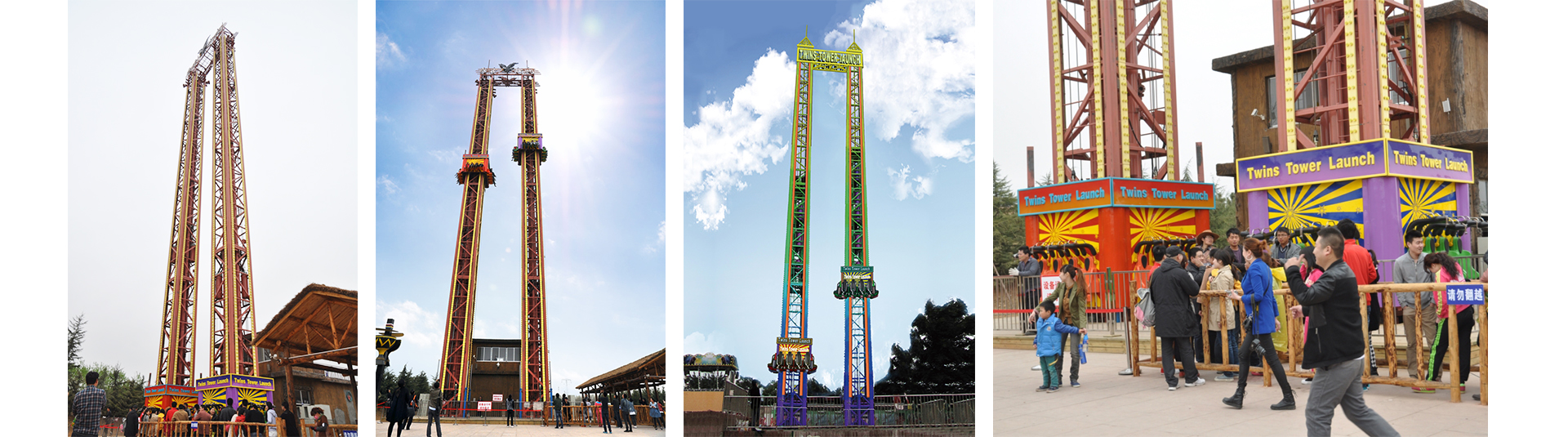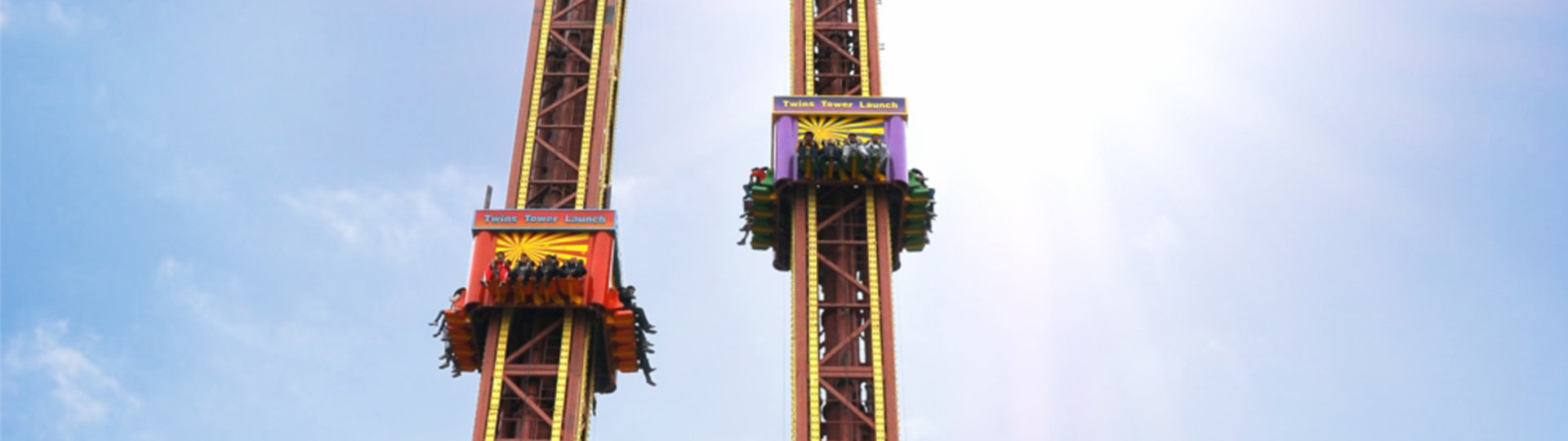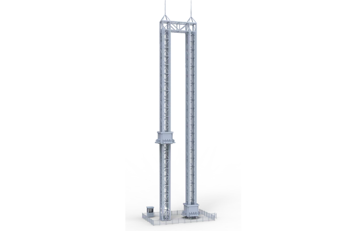 雙塔太空梭以雙塔為造型,設(shè)備整體由發(fā)射塔和速降塔組成。座艙在鋼絲繩的牽引下沿著豎直的立柱軌道作上升、下降運(yùn)動,使乘客在超重與失重的過程中體驗(yàn)加速度升降樂趣。