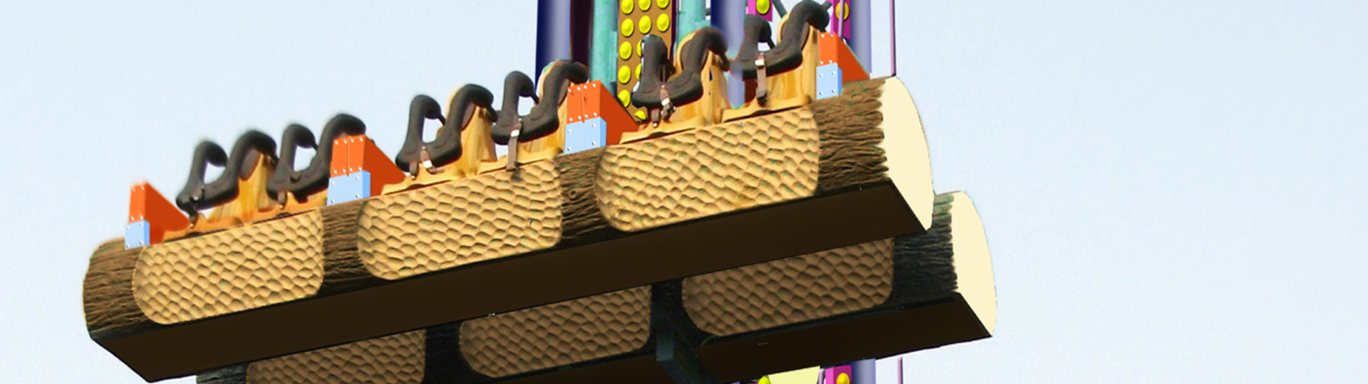 雙排青蛙跳以跳躍為主題,座艙在塔體上做上下移動,當(dāng)運(yùn)行到最高位置時座艙會向前傾轉(zhuǎn)約10°,令乘客體驗到失重、超重以及在高空突然前傾的多重游玩感受。