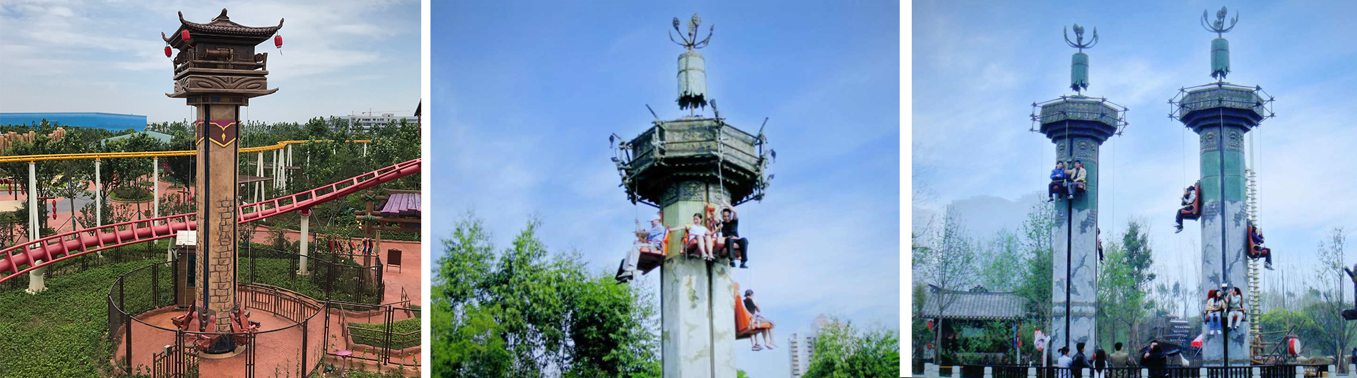 觀光塔在塔身緩慢旋轉(zhuǎn)運(yùn)行時(shí),座椅在乘客拉拽拉繩的操作下實(shí)現(xiàn)升降或停留,給游客一種攀爬向上的體驗(yàn)。塔身快速下降時(shí)游客感受失重刺激,塔?停留半空時(shí)游客又能極目遠(yuǎn)眺周邊美景。