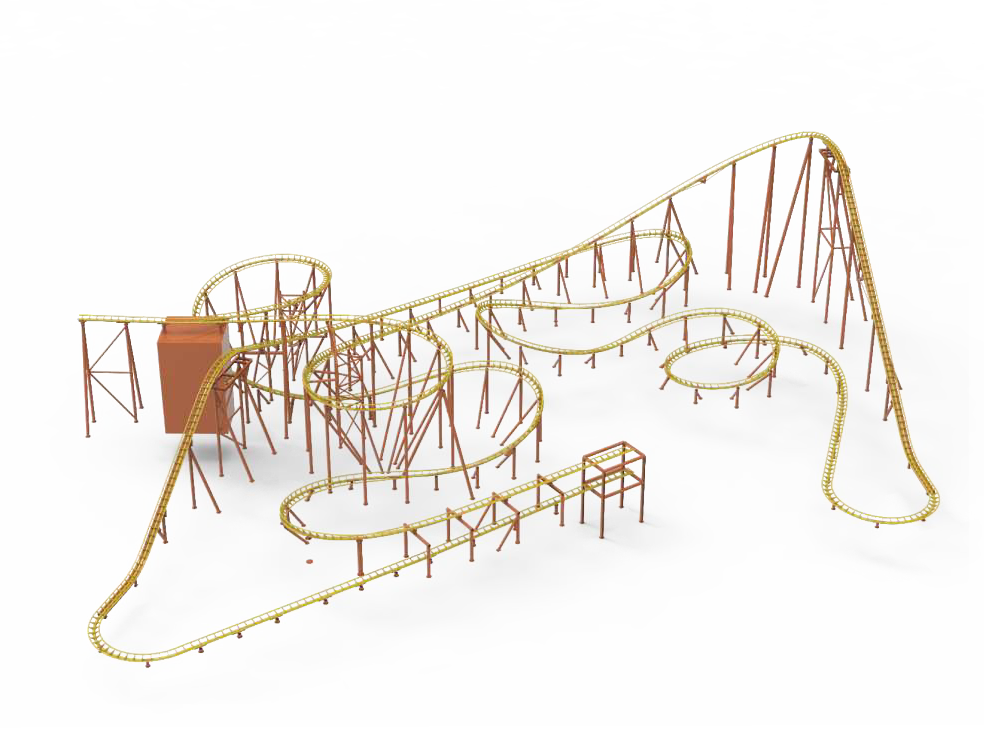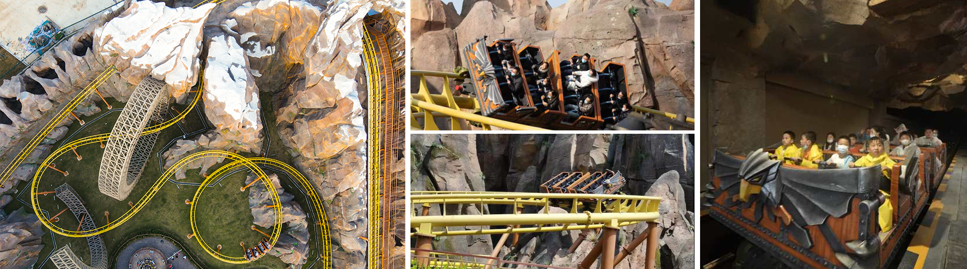 速降背沖過(guò)??是采?2次鏈條提升的礦??,結(jié)合影視技術(shù),運(yùn)?過(guò)程中包含動(dòng)感平臺(tái)、倒溜、“跳樓機(jī)”式的下墜軌道,為帶來(lái)與眾不同的過(guò)??新體驗(yàn)。