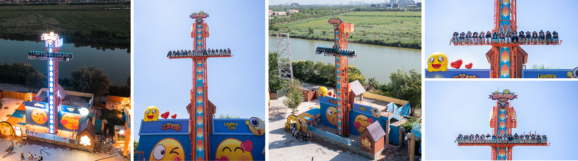 跳躍云霄以跳躍為主題,?六座座艙沿著豎直的?柱軌道作上升、下降和連貫的跳躍運動,使乘客在超重與失重的過程中體驗到跳躍樂趣。