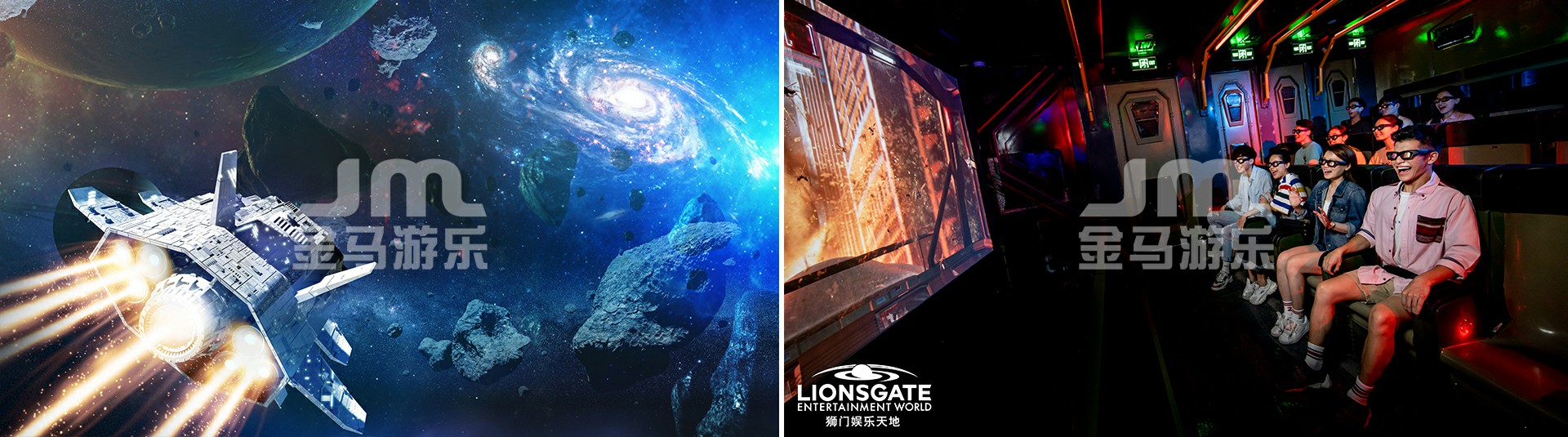 動感艙是30座的超大型封閉式六自由度動感體驗項目。乘客佩戴3D眼鏡,乘坐于科技感十足的大型機(jī)艙內(nèi),動感平臺配合生動有趣的電影情節(jié),逼真地模擬出晃動、傾斜、下墜等動作,帶給乘客精彩刺激的全沉浸式觀感體驗