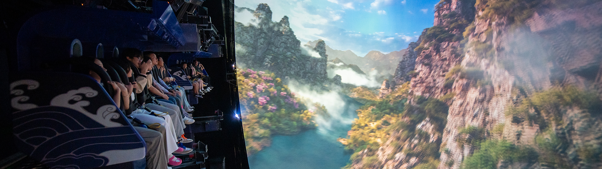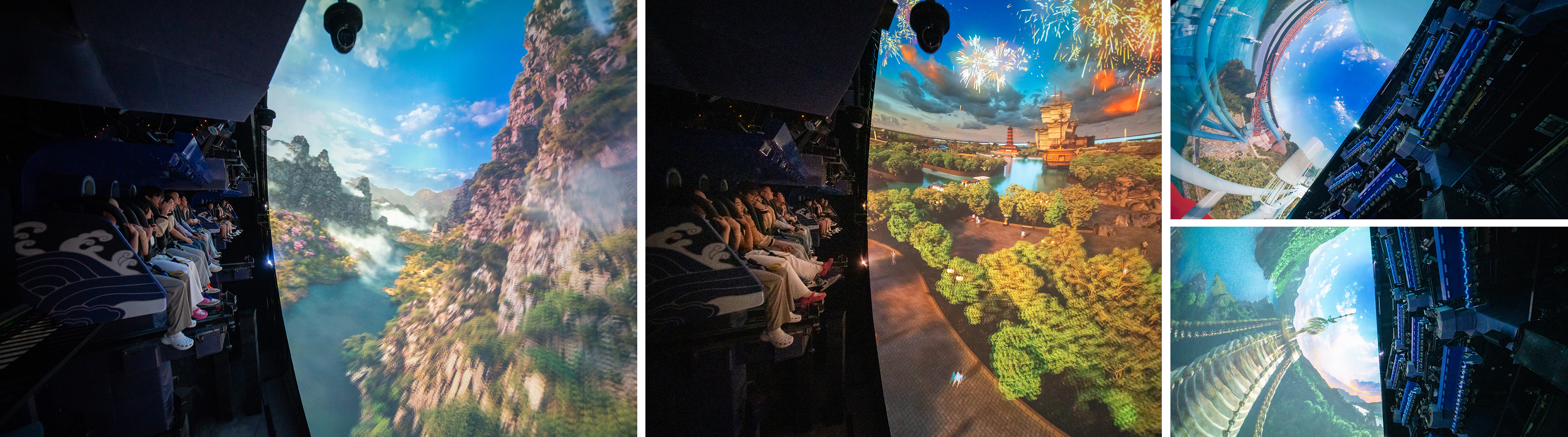 平推式飛行影院采用獨(dú)特的六自由度懸掛式動(dòng)感座椅,逼真模擬墜落、爬升、轉(zhuǎn)彎等動(dòng)作,與巨型大球幕影片內(nèi)容配合,產(chǎn)生身臨其境的全景式包圍的真實(shí)飛行,給游客帶來一場翱翔于空中的強(qiáng)烈沉浸式體驗(yàn)。